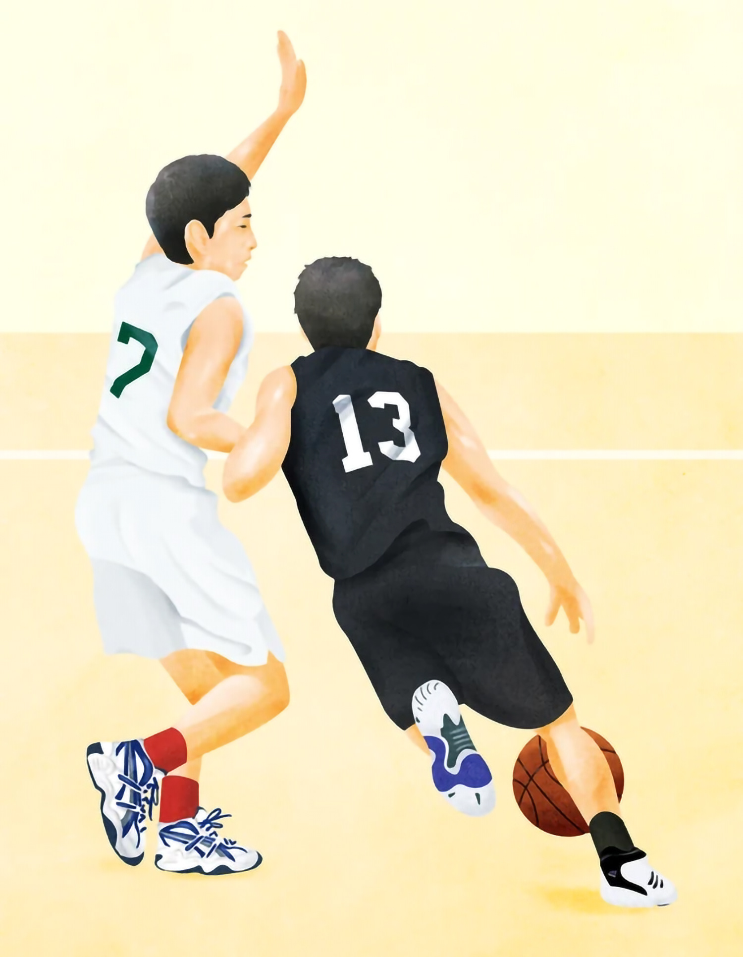 バスケットボールの好きな瞬間を切り取って描きました。